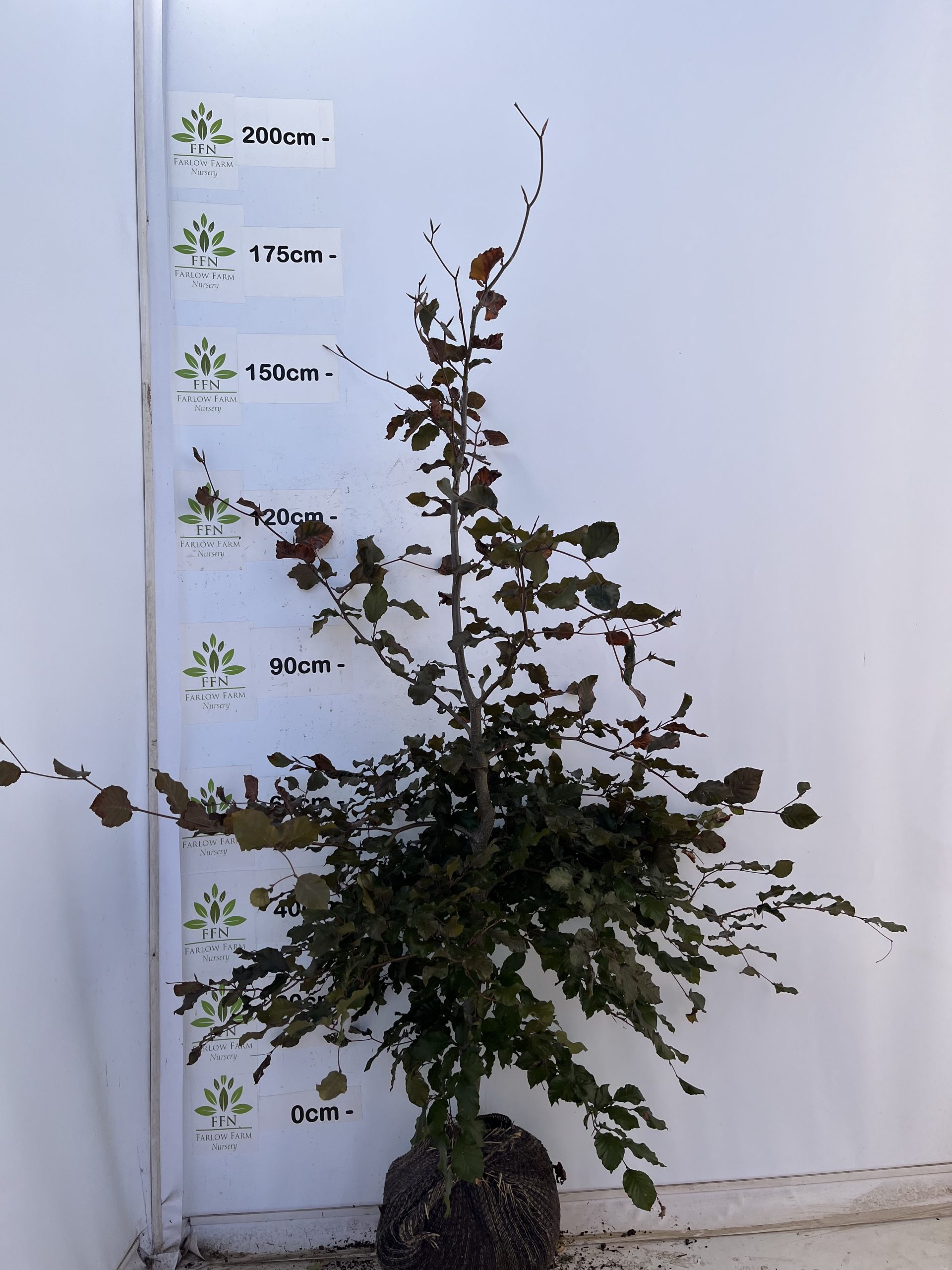 Large deciduous beech trees reaching about 30m in height over time. Grown for their deep purple leaves, which become reddish-copper in autumn. They are normally selected from seed-raised plants