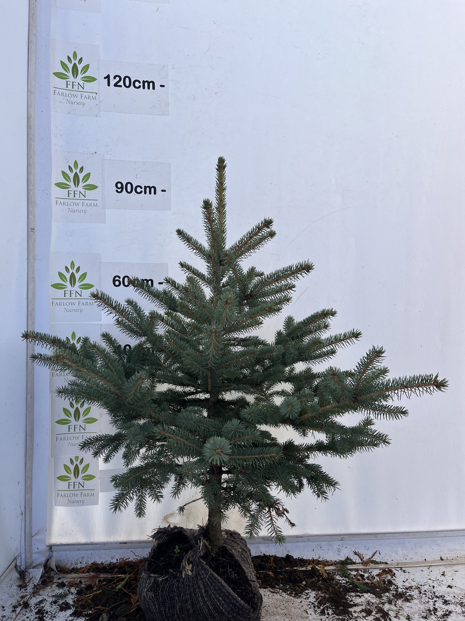 A dense and bushy conifer, variable in shape and size but characterised by foliage that is bright silvery blue. The erect seed cones, borne at the branch tips, are green, becoming brown and pendulous with age